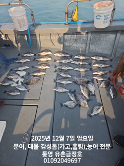 안녕하세요 통영 금정호 대물감성돔 카고 조황입니다오늘도 열심히 잡아내고 왔답니다내일부턴 약조류라 흘림 출동합니다내일 흘림 7자리있습니다(출항 확정!)널널하게 손맛보러가실분 연락주세요~문의번호선장 01092049697♧예약안내♧12월 11일 목요일 흘림 선상 7자리여유(출항확정)12월 12일 금요일 흘림 선상 자리여유12월 13일 토요일 흘림선상 자리여유12월 14일 일요일 흘림선상 5자리여유12월 15일 월요일 흘림선상 자리여유12월 16일 화요일 흘림선상 자리여유12월 17일 수요일 카고선상 4자리여유12월 18일 목요일 카고선상 자리여유12월 19일 금요일 카고선상 자리여유- 이후 대물감성돔 자리있습니다 -#금정호 #유촌금정호 #낚시 #감성돔 #가을 #통영 #조황 #문어 #선상 #문어선상 #선상낚시 #바다낚시 #추석 #연휴 #오후 #오후출조 #오후문어 #갑오징어 #갑이#이벤트 #무료승선권 #할인권 #금어기 #첫출항.문의번호선장 01092049697이벤트와 예약현황은 아래링크를 참고하세요http://geumjeong.sunsang24.com/'유촌 금정호' 밴드로 초대합니다.https://band.us/n/acac09acQ98fw*** 통영 금정호 예약 안내 ***예약문의 : 010-9204-9697오시는길 : 경남 통영시 도산면 저산유촌길 83홈페이지 : http://geumjeong.sunsang24.com/