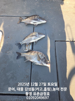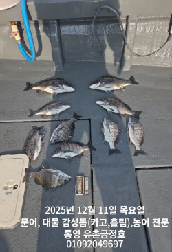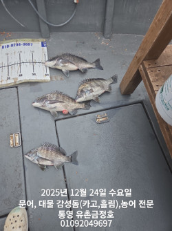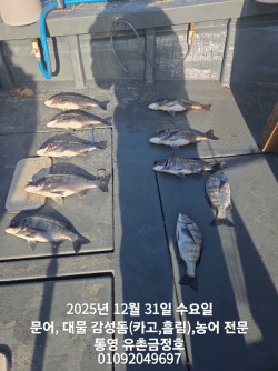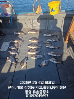 안녕하세요 통영 금정호 대물감성돔 카고 조황입니다금년도 마지막 출조 다녀왔습니다약조류라 걱정했지만 싸이즈 좋은 녀석들로 손맛진행하고 왔답니다 확실히 수온이 내려가기 시작하니 싸이즈가 좋아지네요점차 살아나는 물때라 마릿수까지 받혀줄듯하네요예약 완료일은 선단배 연결가능하며월요일부터 자리있습니다! 연락주세요^^문의번호선장 01092049697♧예약안내♧01월 01일 목요일 카고선상 완료(선단배 연결가능)01월 02일 금요일 카고선상 완료 (선단배 연결가능)01월 03일 토요일 카고선상 완료(선단배 연결가능)01월 04일 일요일 카고선상 완료 (선단배 연결가능)01월 05일 월요일 카고선상 4자리여유01월 06일 화요일 카고선상 자리여유01월 07일 수요일 카고선상 자리여유01월 08일 목요일 카고선상 자리여유01월 09일 금요일 카고선상 5자리여유01월 10일 토요일 카고or흘림 선상 자리여유01월 11일 일요일 흘림선상 2자리여유- 이후 대물감성돔 자리있습니다 -#금정호 #유촌금정호 #낚시 #감성돔 #가을 #통영 #조황 #문어 #선상 #문어선상 #선상낚시 #바다낚시 #추석 #연휴 #오후 #오후출조 #오후문어 #갑오징어 #갑이#이벤트 #무료승선권 #할인권 #금어기 #첫출항.문의번호선장 01092049697이벤트와 예약현황은 아래링크를 참고하세요http://geumjeong.sunsang24.com/'유촌 금정호' 밴드로 초대합니다.https://band.us/n/acac09acQ98fw*** 통영 금정호 예약 안내 ***예약문의 : 010-9204-9697오시는길 : 경남 통영시 도산면 저산유촌길 83홈페이지 : http://geumjeong.sunsang24.com/