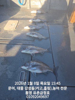 안녕하세요 통영 금정호 대물감성돔 카고 조황입니다오늘도 추위와 엄청난 바람과 사투를 벌이며 손맛 씬나게 보고왔답니다연일 5짜 출현이네요^^예약 완료일은 선단배 연결가능하며월요일부터 자리있습니다! 연락주세요^^문의번호선장 01092049697♧예약안내♧01월 03일 토요일 카고선상 완료(선단배 연결가능)01월 04일 일요일 카고선상 완료 (선단배 연결가능)01월 05일 월요일 카고선상 4자리여유01월 06일 화요일 카고선상 4자리여유01월 07일 수요일 카고선상 자리여유01월 08일 목요일 카고선상 자리여유01월 09일 금요일 카고선상 5자리여유01월 10일 토요일 카고or흘림 선상 자리여유01월 11일 일요일 흘림선상 2자리여유- 이후 대물감성돔 자리있습니다 -#금정호 #유촌금정호 #낚시 #감성돔 #가을 #통영 #조황 #문어 #선상 #문어선상 #선상낚시 #바다낚시 #추석 #연휴 #오후 #오후출조 #오후문어 #갑오징어 #갑이#이벤트 #무료승선권 #할인권 #금어기 #첫출항.문의번호선장 01092049697이벤트와 예약현황은 아래링크를 참고하세요http://geumjeong.sunsang24.com/'유촌 금정호' 밴드로 초대합니다.https://band.us/n/acac09acQ98fw*** 통영 금정호 예약 안내 ***예약문의 : 010-9204-9697오시는길 : 경남 통영시 도산면 저산유촌길 83홈페이지 : http://geumjeong.sunsang24.com/