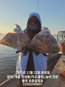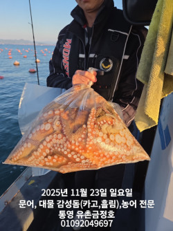 안녕하세요 통영 유촌 금정호 종일문어선상 조황입니다어제는 예보보다 강한바람에 어려움이 많았지만 선수님들이 떨구는것 없이 싹싹 잡아내어주시니 다들 묵직하게 잡고 왔답니다^^어제도 2.46K 등장!! 키로오버는 모두 챙기셨네요내일 종일 7자리 여유 있습니다~(17시 입항 10만원)내일부턴 날씨가 좋아진다네요 (출항확정!)널널하게 2K문어 손맛보러 가시지요!!오늘은 기상악화로 휴항중이네요ㅠ(체력완충해서 낼 덩어리들 쫙쫙 잡으로 가야겠습니다)문의번호선장 01092049697♧예약안내♧11월 20일 목요일 종일문어선상 8자리여유11월 21일 금요일 오전문어선상 자리여유 (요청시 종일변경가능)11월 22일 토요일 종일문어선상 1자리여유11월 23일 일요일 종일문어선상 1자리여유11월 24일 월요일 종일문어선상 자리여유11월 25일 화요일 종일문어선상 자리여유11월 26일 수요일 종일문어선상 자리여유11월 27일 목요일 오전문어선상 자리여유 (요청시 종일변경가능)11월 28일 금요일 오전문어선상 자리여유 (요청시 종일변경가능)11월 29일 토요일 종일문어선상 자리여유11월 30일 일요일 종일문어선상 자리여유- 이후 쭉 자리있습니다 -#금정호 #유촌금정호 #낚시 #감성돔 #가을 #통영 #선외기 #덴마 #조황 #문어 #선상 #문어선상 #선상낚시 #바다낚시 #추석 #연휴 #오후 #오후출조 #오후문어 #갑오징어 #갑이#이벤트 #무료승선권 #할인권 #금어기 #첫출항.문의번호선장 01092049697이벤트와 예약현황은 아래링크를 참고하세요http://geumjeong.sunsang24.com/'유촌 금정호' 밴드로 초대합니다.https://band.us/n/acac09acQ98fw*** 통영 금정호 예약 안내 ***예약문의 : 010-9204-9697오시는길 : 경남 통영시 도산면 저산유촌길 83홈페이지 : http://geumjeong.sunsang24.com/
