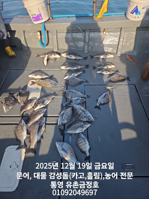 ![]() 안녕하세요 통영 금정호 대물감성돔 카고 조황입니다 오늘도 열심히 잡아내고 왔답니다 합계 27수 공동1등 11수^^ 평균사이즈가 나날이 좋아지네요~ 다음주 월요일 4자리여유있습니다^^ 내일은 선단배 연결가능합니다 연락주세요^^ 문의번호 선장 01092049697 ♧예약안내♧ 12월 20일 토요일 카고선상 완료 (선단배 연결가능) 12월 21일 일요일 카고선상 완료 (선단배 연결가능) 12월 22일 월요일 카고선상 4자리여유 12월 23일 화요일 카고선상 자리여유 12월 24일 수요일 카고선상 4자리여유 12월 25일 목요일 카고선상 완료 (선단배 연결가능) 12월 26일 금요일 카고or흘림 선상 자리여유 12월 27일 토요일 흘림선상 자리여유 12월 28일 일요일 흘림선상 자리여유 - 이후 대물감성돔 자리있습니다 - #금정호 #유촌금정호 #낚시 #감성돔 #가을 #통영 #조황 #문어 #선상 #문어선상 #선상낚시 #바다낚시 #추석 #연휴 #오후 #오후출조 #오후문어 #갑오징어 #갑이 #이벤트 #무료승선권 #할인권 #금어기 #첫출항. 문의번호 선장 01092049697 이벤트와 예약현황은 아래링크를 참고하세요 '유촌 금정호' 밴드로 초대합니다. ![]() ![]() ![]() ![]() *** 통영 금정호 예약 안내 *** 예약문의 : 010-9204-9697 홈페이지 : http://geumjeong.sunsang24.com/