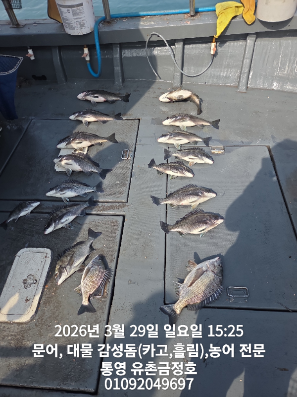 ![]() 통영 금정호 대물감성돔 카고 선상 조황입니다 조류가 생각보다 힘있게 흘러가준 덕분에 손맛 재미나게 보고왔답니다^^ 싸이즈도 좋고 마릿수도 좋네요 이제 조류 흐름이 좋으니 호조황이 이루어질듯합니다 내일 5자리 여유(출항확정!) 널널하게 손맛보러 가실분 모십니다~~ 문의번호 선장 01092049697 ※ 예약 안내 ※ 03월 30일 월요일 카고 선상 5자리여유 03월 31일 화요일 카고 선상 자리여유 04월 01일 수요일 카고 선상 자리여유 04월 02일 목요일 카고 선상 자리여유 04월 03일 금요일 카고 선상 자리여유 04월 04일 토요일 카고 선상 2자리여유 04월 05일 일요일 카고 선상 3자리여유 04월 06일 월요일 카고 선상 자리여유 04월 07일 화요일 카고 선상 자리여유 - 이후 쭉~ 자리여유 있습니다 - 문의번호 선장 01092049697 #금정호 #유촌금정호 #낚시 #감성돔 #가을 #통영 #조황 #문어 #선상 #문어선상 #선상낚시 #바다낚시 #추석 #연휴 #오후 #오후출조 #오후문어 #갑오징어 #갑이 #이벤트 #무료승선권 #할인권 #금어기 #첫출항. 이벤트와 예약현황은 아래링크를 참고하세요 '유촌 금정호' 밴드로 초대합니다. *** 통영 금정호 예약 안내 *** 예약문의 : 010-9204-9697 홈페이지 : http://geumjeong.sunsang24.com/